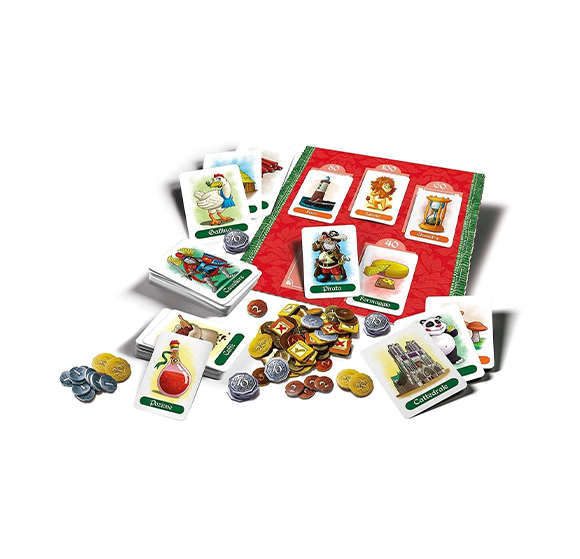 • Include: tabellone, carte da gioco, monetine e manuale d’uso