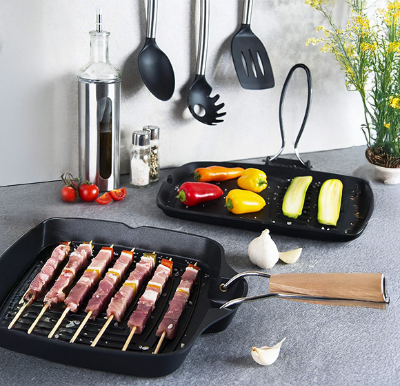 - Ghisa smaltata extra resistente: spessa 0,5 cm, distribuisce il calore uniformemente per una cottura costante e sapore autentico da grigliata