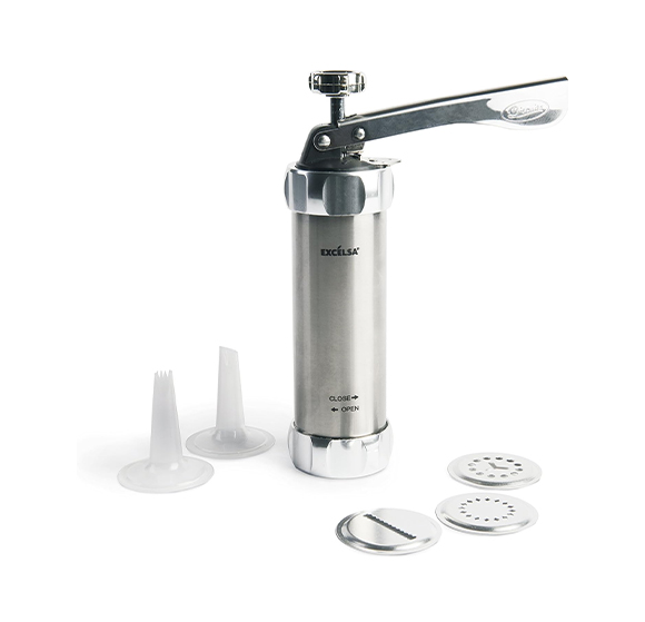 Una pressa per biscotti ideale per chi ama sperimentare in cucina e chi vuole rendere ancora più divertente e creativa la preparazione dei dolci in casa grazie a 20 trafile diverse, che permettono di sbizzarrirsi con le forme, e 4 beccucci, che consentono di personalizzare le creazioni con decorazioni originali.