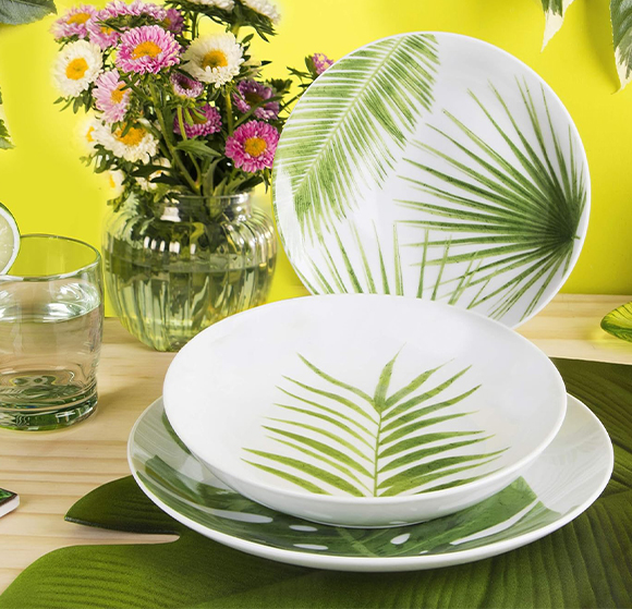 Rendi speciale ogni occasione, dal pranzo di tutti i giorni alle cene con amici con il servizio piatti Foliage Excelsa. Composto da 18 pezzi, serve fino a 6 persone dall’antipasto al dolce con stile ed eleganza. Realizzato in porcellana resistente, è pratico per l’uso quotidiano: lavabile in lavastoviglie e compatibile con il microonde.