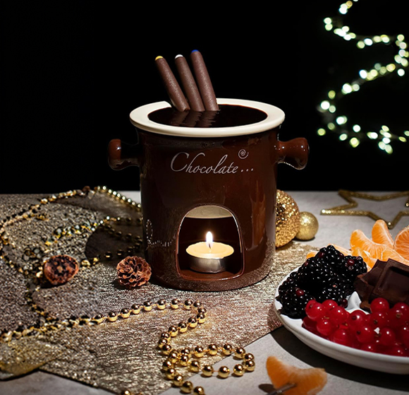 Un set perfetto per rendere ancora più golosi i momenti in compagnia delle persone che ami, ideale per cioccolato e altre preparazioni dolci. Il design è elegante e combina l’acciaio inossidabile con la ceramica, creando un accessorio dall’estetica calda e accogliente, ma allo stesso tempo funzionale.