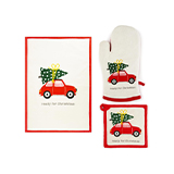 Un set tessile natalizio pensato per decorare la cucina durante le festività. Comprende un guanto da forno, una presina e un canovaccio, con una decorazione a tema natalizio curata nei minimi dettagli. I colori e la qualità dei materiali lo rendono un set pratico e piacevole da utilizzare per le preparazioni dei piatti tipici delle festività.