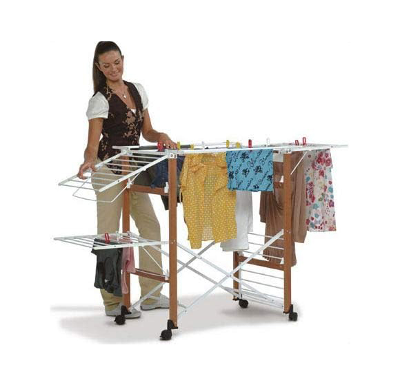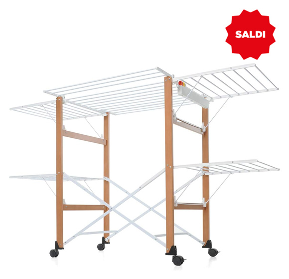 Pratico e robusto, lo stendibiancheria Gulliver unisce solidità e design raffinato. Realizzato in legno massiccio di faggio verniciato noce con bacchette in alluminio, garantisce stabilità e facilità d’uso, perfetto per chi vuole funzionalità senza rinunciare allo stile. Le ruote antigraffio, di cui due con freno, rendono semplice spostarlo da una stanza all’altra.