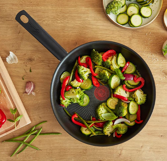 Cucina in modo sano e sostenibile con la Padella Rigenera Green. Dotata di rivestimento antiaderente Titanium, ti permette di preparare piatti gustosi senza aggiunta di grassi e con la massima facilità di pulizia. L’indicatore Thermosignal ti segnala il momento perfetto per iniziare la cottura, il fondo spesso e indeformabile permette al calore di diffondersi uniformemente sui piani cottura ed è utilizzabile anche in forno fino a 175°C. Un alleato pratico, resistente e amico dell’ambiente, garantito 5 anni.