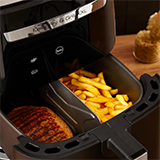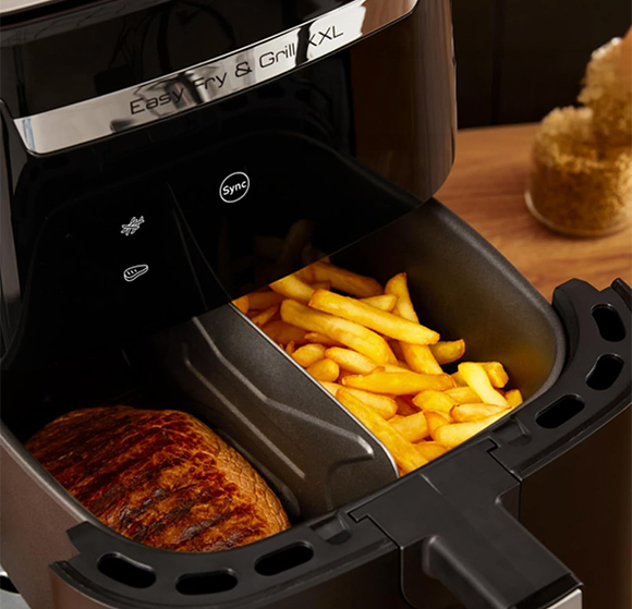 Prepara pasti salutari con la Friggitrice ad Aria e Grill Easy Fry & Grill XXL. Questa tecnologia 2-in-1 ti permette di friggere senza olio e grigliare carne, pesce e verdure ottenendo pietanze dalla superficie dorata e croccante e dall'interno morbido e succoso. La capacità XXL serve fino a 8 persone, mentre il divisorio regolabile consente di cuocere due piatti diversi simultaneamente. Include 8 programmi preimpostati per una cottura semplice e versatile che esalta i sapori naturali degli ingredienti.