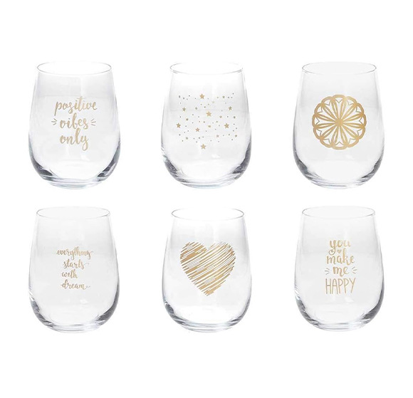 Il set ideale per impreziosire la tavola natalizia con un tocco di eleganza. Le decorazioni geometriche e le scritte dorate risaltano sul vetro trasparente, creando un effetto raffinato che valorizza ogni brindisi e aggiunge luce all’atmosfera festiva.