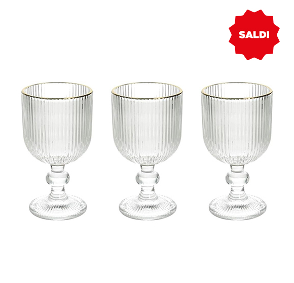 • Set composto da 3 calici in vetro trasparente