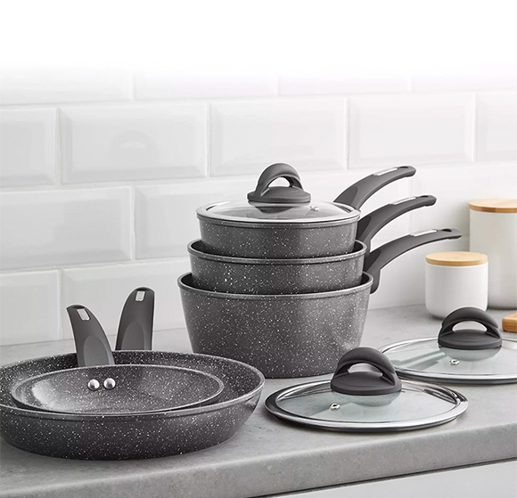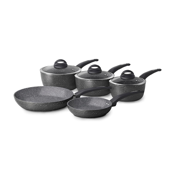 Con il Set di Pentole e Padelle con rivestimento in ceramica, cucini in modo sano e pratico grazie alla superficie antiaderente che consente di ridurre l’uso di grassi e facilita la pulizia. Il corpo in alluminio assicura una distribuzione uniforme del calore, mentre il design resistente è compatibile con piani cottura a gas, ad induzione, elettrici e in vetroceramica. Un set funzionale e versatile, pensato per accompagnarti nella preparazione quotidiana dei tuoi piatti con semplicità ed efficienza.