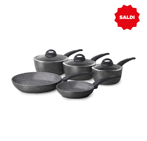 - Il set comprende: Pentola da 18 cm, pentola da 20 cm, pentola da 22 cm, padella da 20 cm, padella da 28 cm, coperchi in vetro da 18 cm, 20 cm e 22 cm