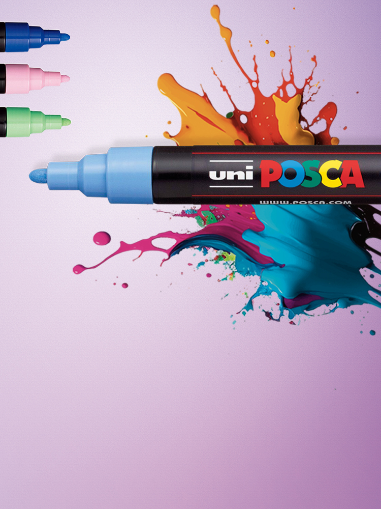 A scuola, in ufficio o nei momenti liberi, uniPOSCA ti accompagna ovunque: per dare stile agli oggetti più speciali e rendere ogni superficie un piccolo spazio creativo.